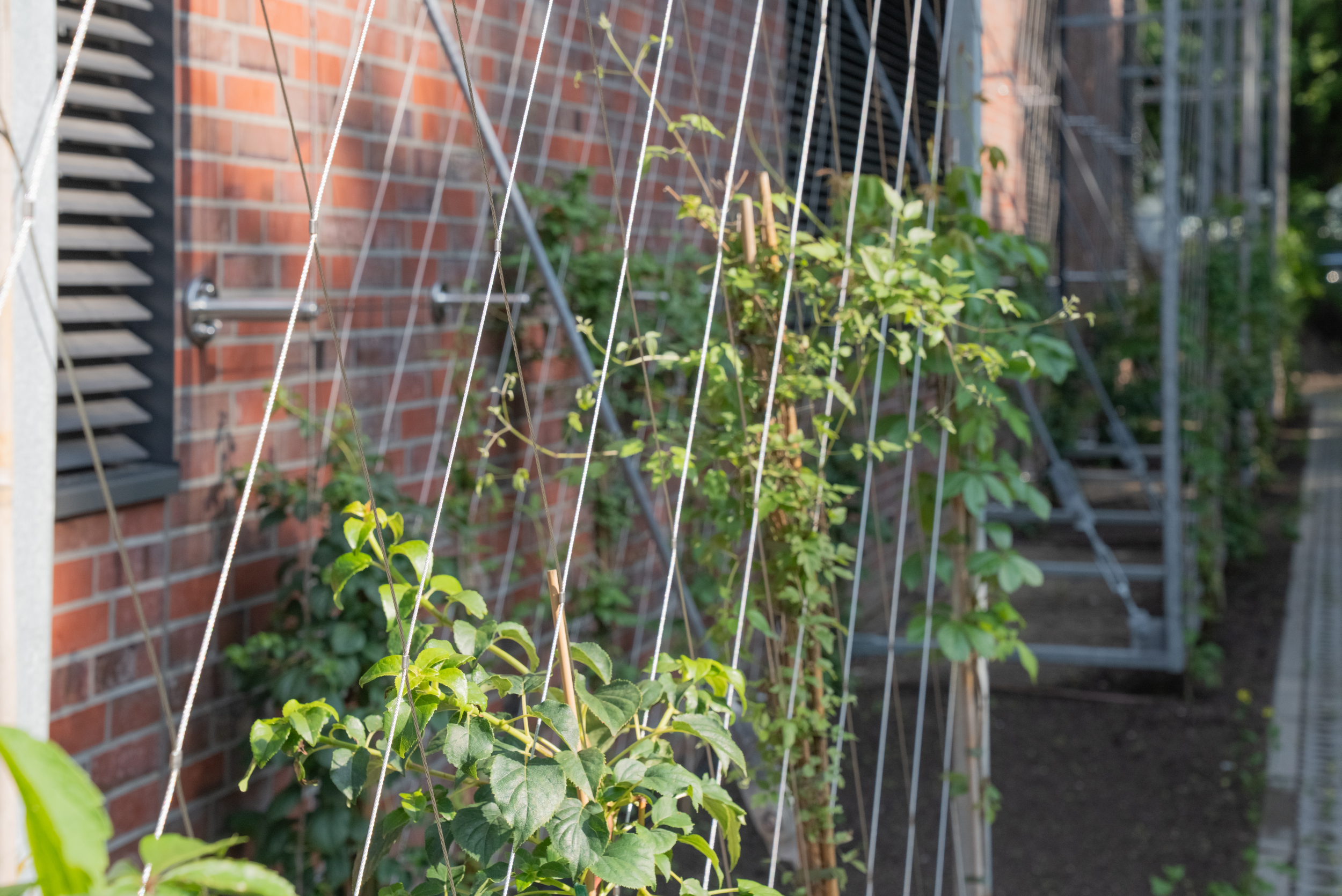 | verbaute Edelstahlseile | ca. 770 m² für die Fassadenbegrünung |
