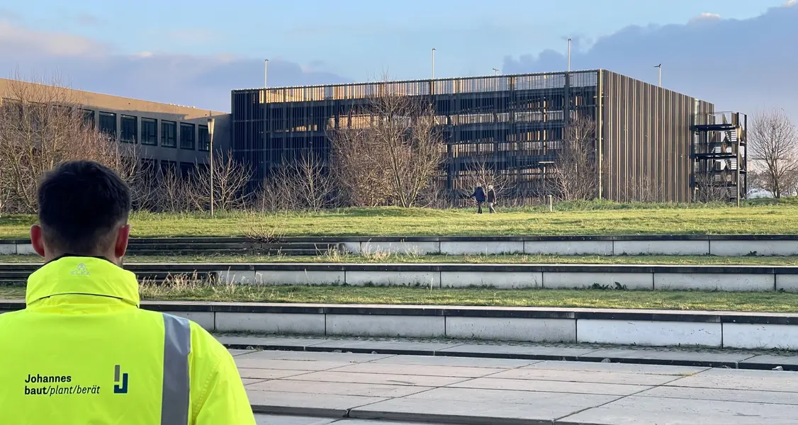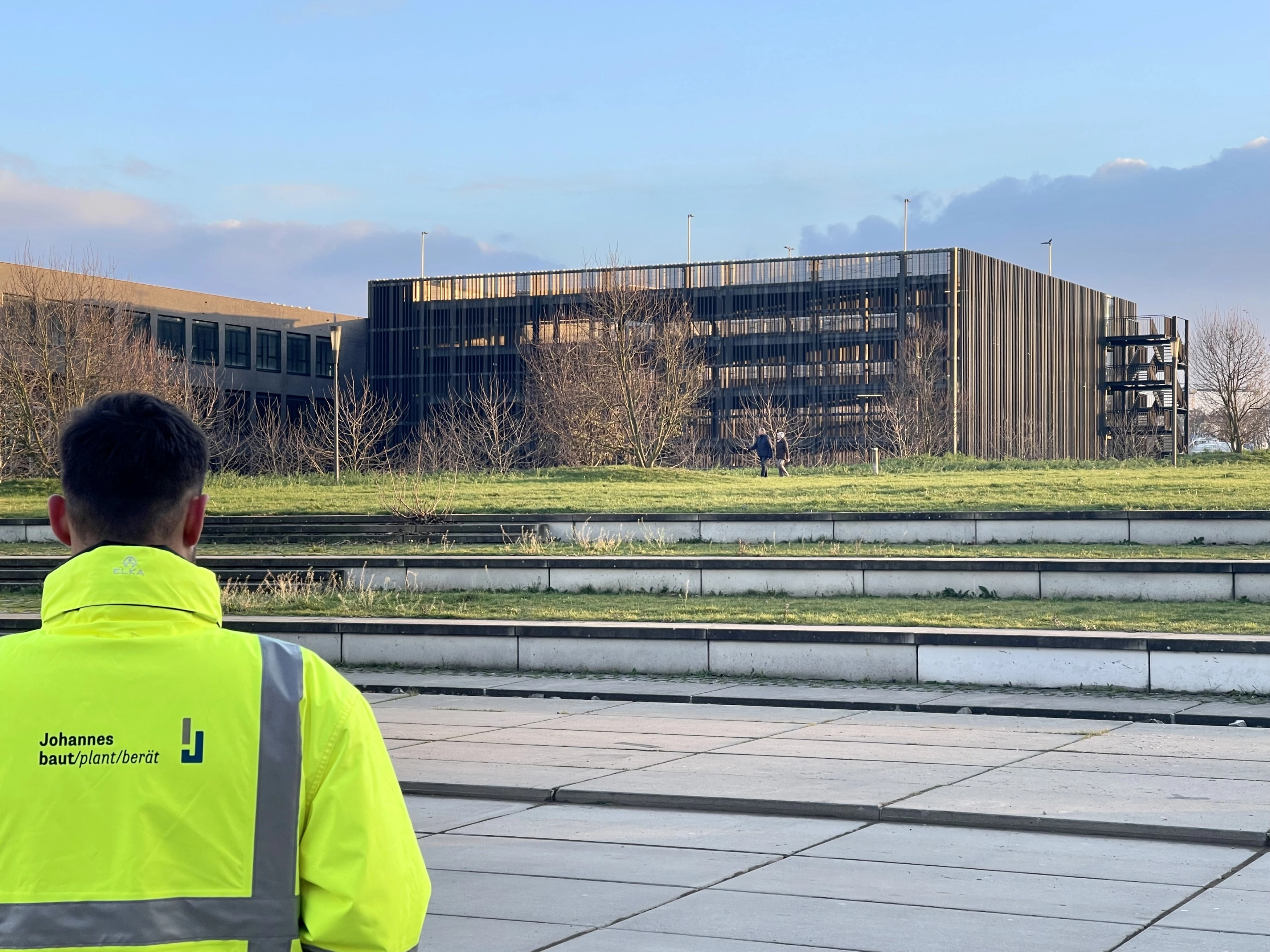 - Der Stahlbau wird mit wärmeinduzierter Branderkennung überwacht.