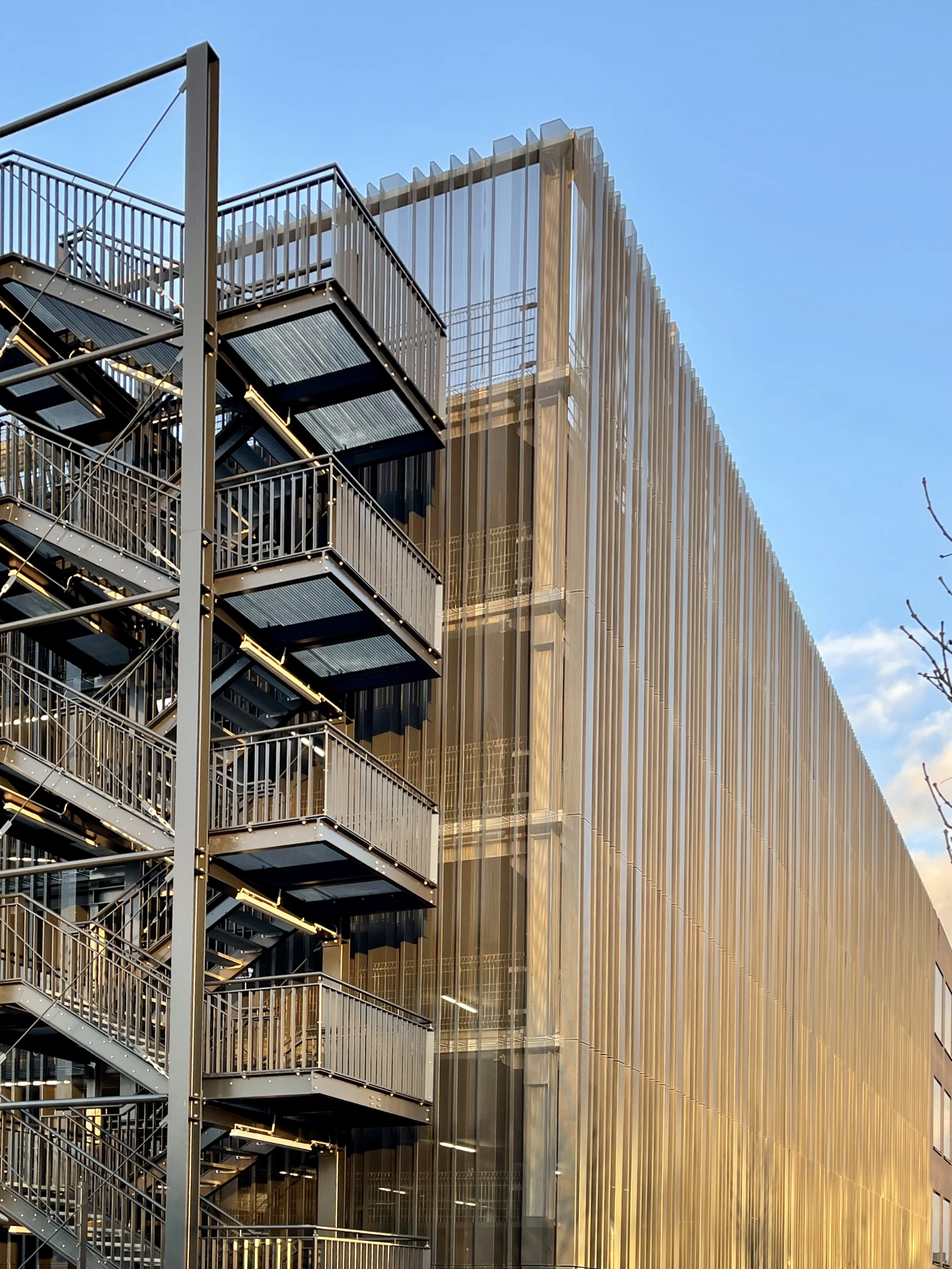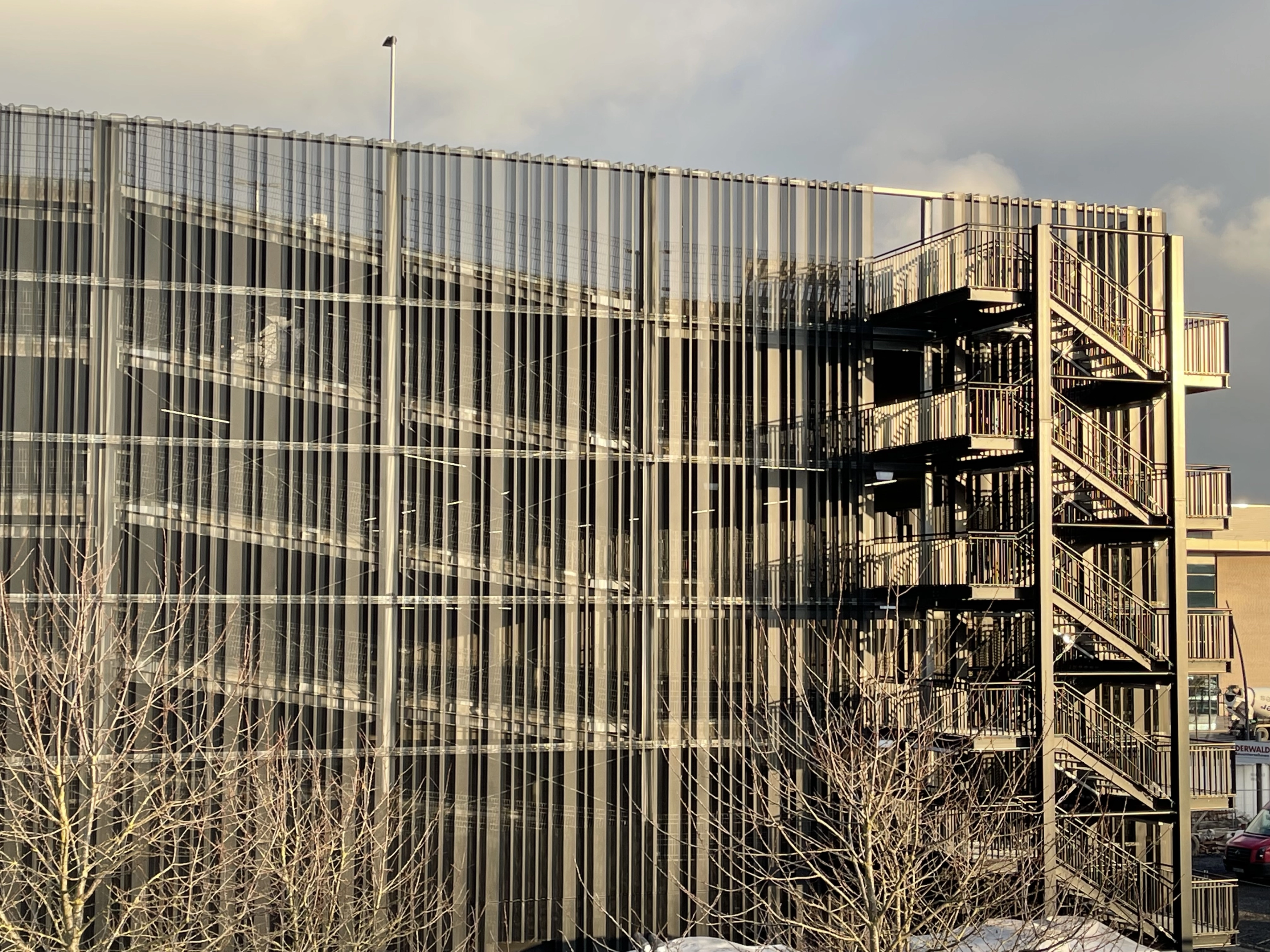 - Unter den Parkebenen befinden sich beheizte Lager- und Logistikflächen, hier erfolgte die Ausführung des Tragwerks in F90-Qualität.